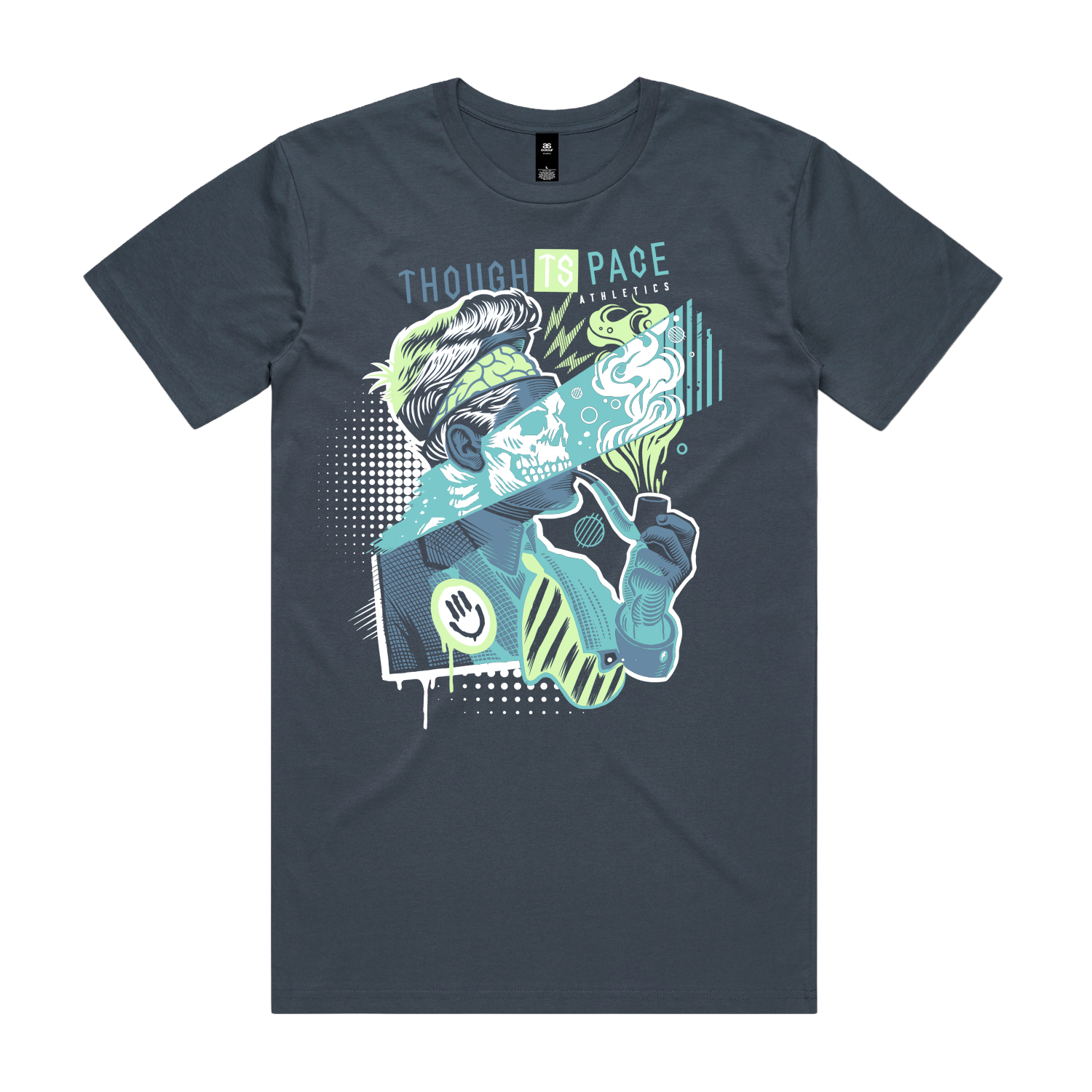 The core of the design draws from the slick, idealized world of 1950s and 60s advertising, sharp silhouettes, confident posture, and that unmistakable mid-century polish. It’s clean, composed, and timeless. But in true Thought Space fashion, that polish doesn’t stay intact for long.