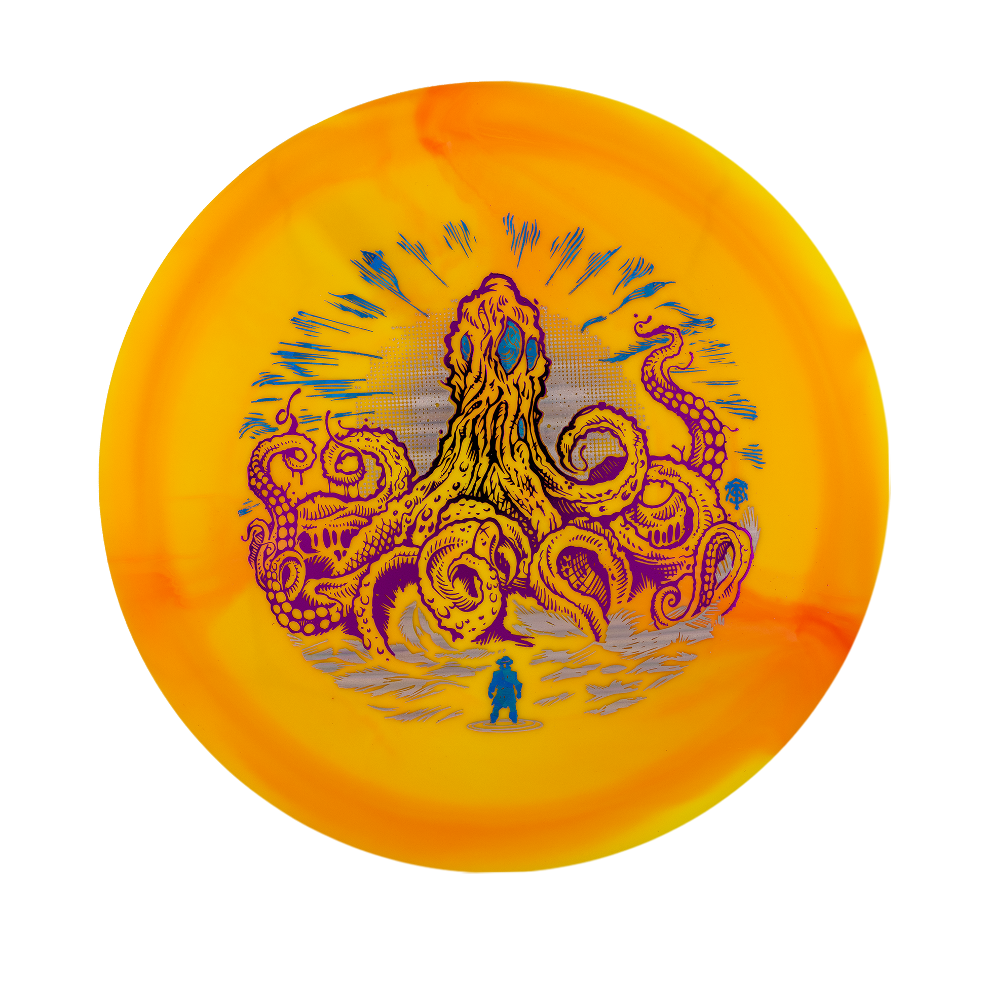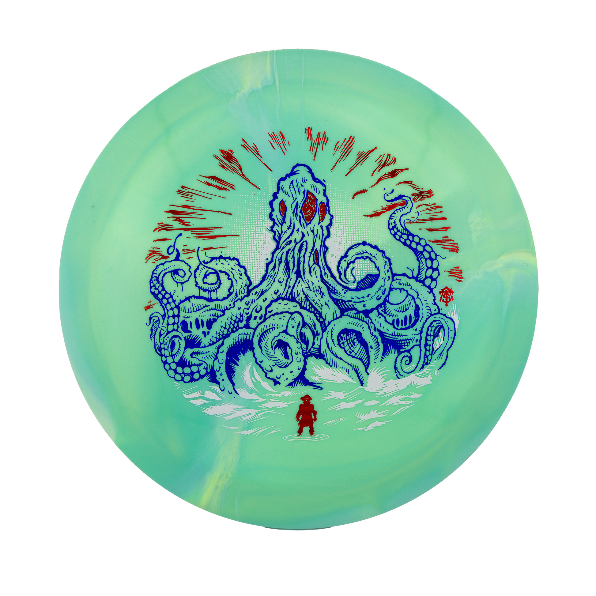 Rising from the depths just in time for spooky season, the Kaiju Expanse brings monstrous energy to the fairways. This towering creature of chaos reminds us that every throw is a battle with fear — of the water, the trees, the out-of-bounds. Face it head-on, harness your power, and conquer what lurks inside the circle.